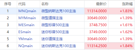 截至发稿,目前三大指数期货正在走高,纳指期货 $MNQmain 涨超1.8%,标普500指数期货 $ESmain 涨超1.6%,道指期货 $MYMmain 涨约1.4%。