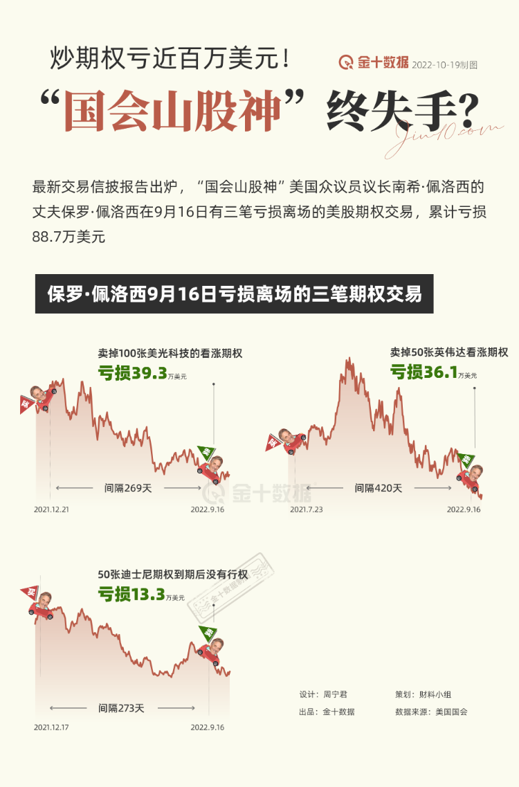根据美国国会众议院议长佩洛西递交的最新信披文件,她的老公保罗·佩洛西今年炒美股期权亏掉近百万美元。