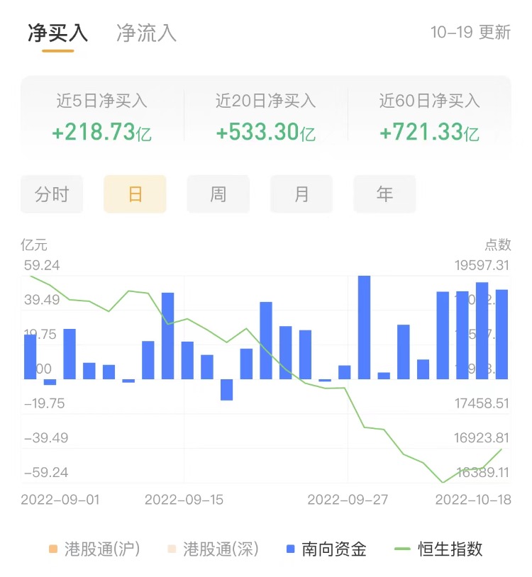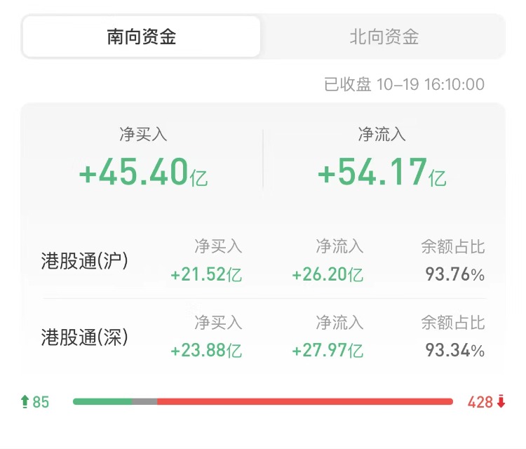 南下资金今日净买入港股45.4亿港元,其中港股通(沪)净买入21.52亿港元,港股通(深)净买入23.88亿港元。上一交易日净买入港股51.31亿港元。