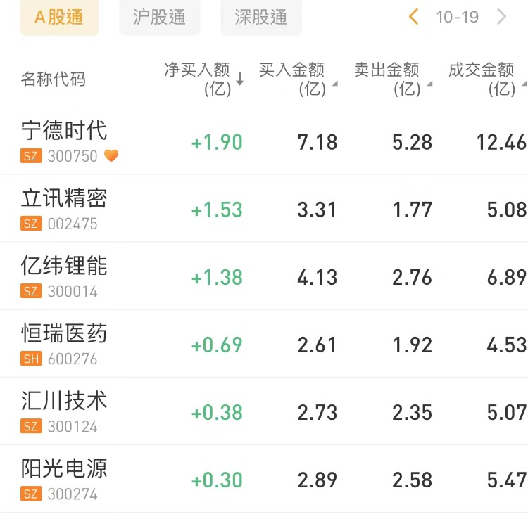 北上资金今日净买入宁德时代 $300750.SZ 1.9亿元,为今日买入之最;净买入立讯精密 $002475.SZ 1.53亿元。