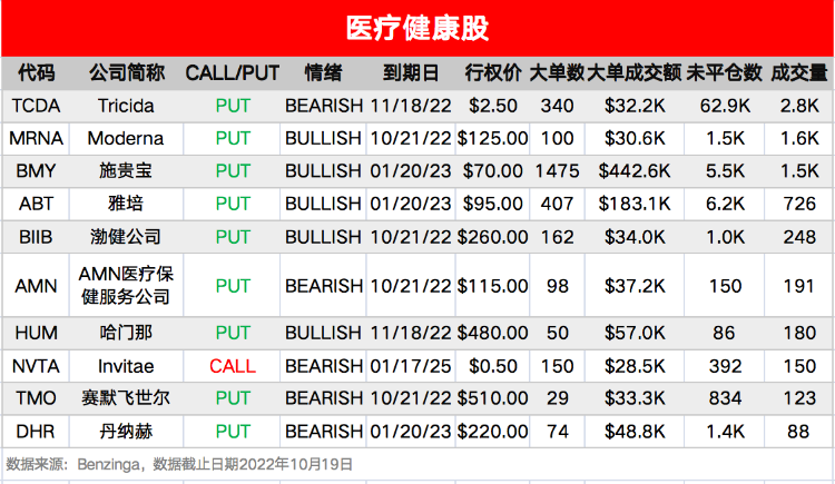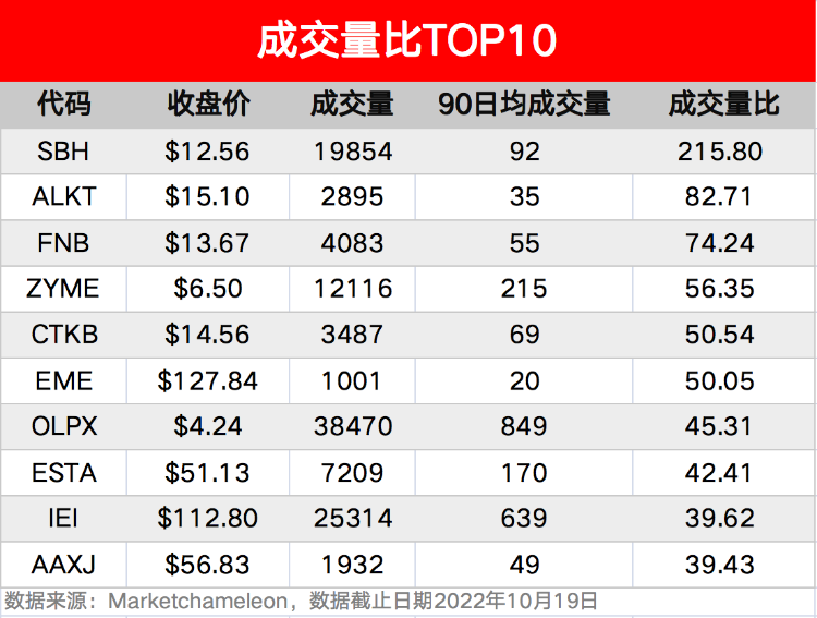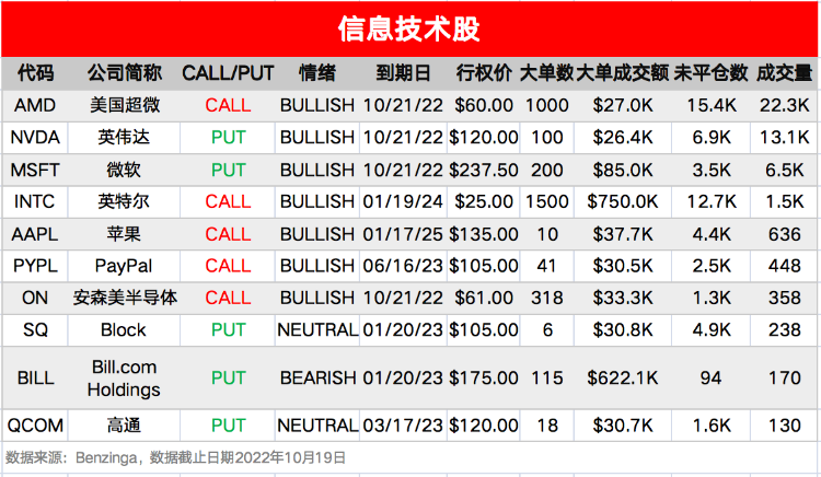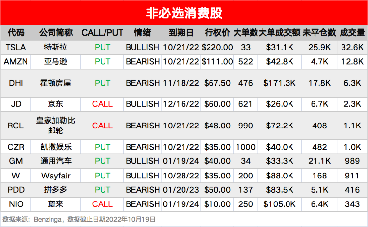 周三(10月19日),非必选消费、信息技术和医疗健康板块相关个股出现较多活跃单,按照当日成交量排行,榜单TOP分别如下:
