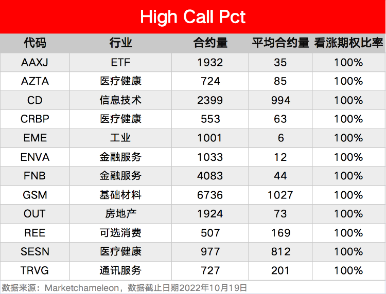 注:High Call Pct/High Put Pct是指相关期权标的当前看涨/看跌比例大小,该比值越高意味着该期权标的看涨/看跌的合约占比越高。