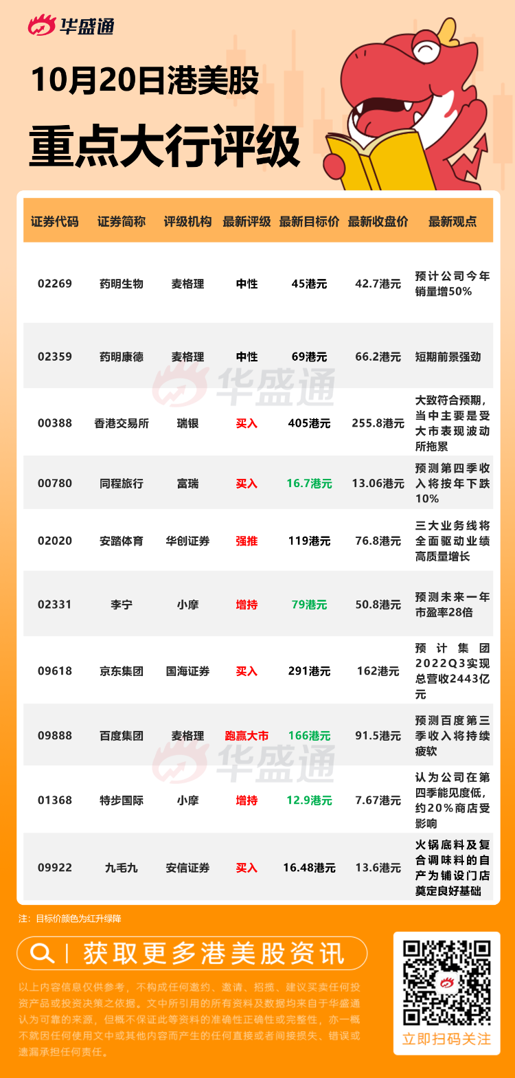 瑞银认为,港交所第三季EBITDA利润率与第二季度相比基本稳定,投资收益预期将受惠于利率上升,中期内将继续获支持,基于2023年预测市盈率约41倍,给予目标价405港元,并维持买入评级。