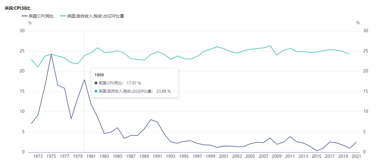 还记得撒切尔是怎么解决的吗?大滞胀+石油危机期间,1979年,撒切尔上台,立即采取强硬右倾手腕,通胀下降到一定规模,才开始降税。