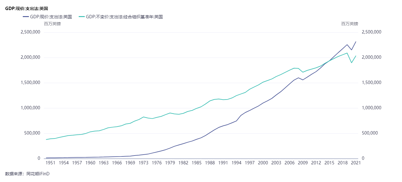 反应在宏观经济层面上,名义、实际GDP距离不断拉大。名义经济的增长,要快于国内实体经济的产出。