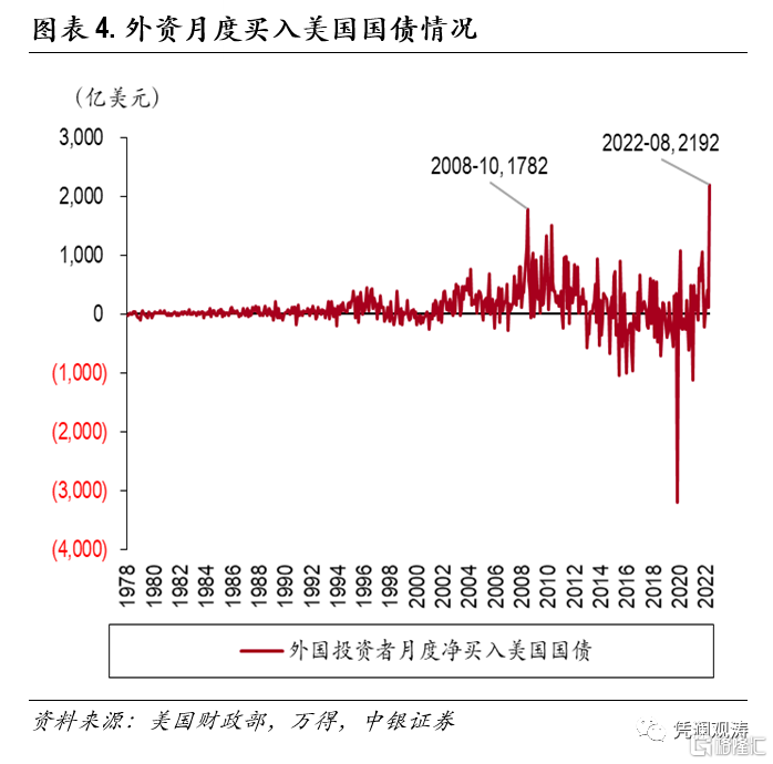 [1] 根据美国财政部说明,国际资本流动(TIC)数据中除了海外投资者买入美国证券资产外,也有美国投资者买入海外资产,包括海外债券和股票,正值表示美国投资者卖出外国资产,资金回流美国,负值表示买入外国资产,资金流出美国。