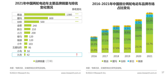 类似的格局也在电动车市场形成。艾瑞数据显示,在2021年国内电动车市场中,雅迪、爱玛、台铃分别位列销量前三,小牛仅仅排在第九位,九号、哈喽等其他造车新势力也都未能进入前十。到今年上半年,前五席位中也有三个属于传统厂商,雅迪和爱玛更是稳坐前两位。