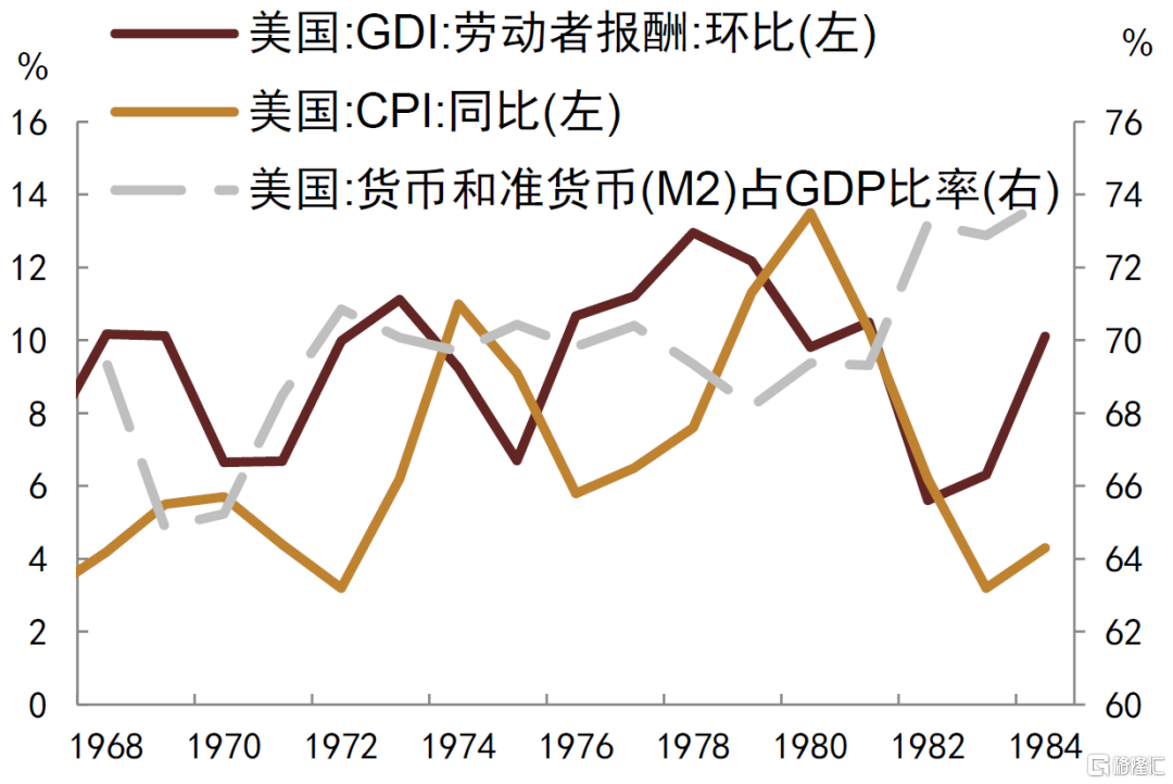 图表2:70年代货币供应较充足、工资通胀螺旋较显著
