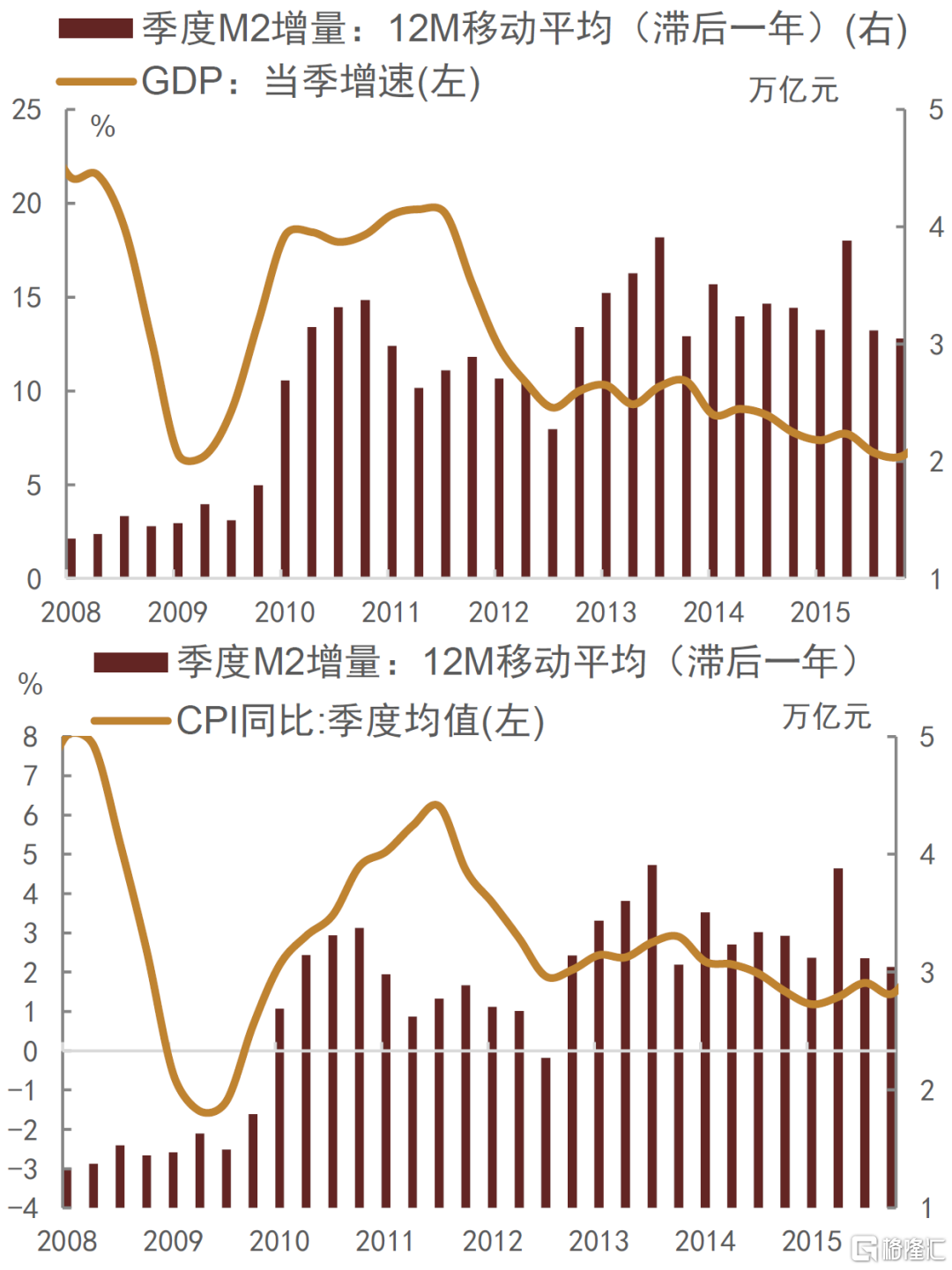 图表15:2011年流动性收紧后,需求开始放缓(上),通胀水平也随之下降(下)