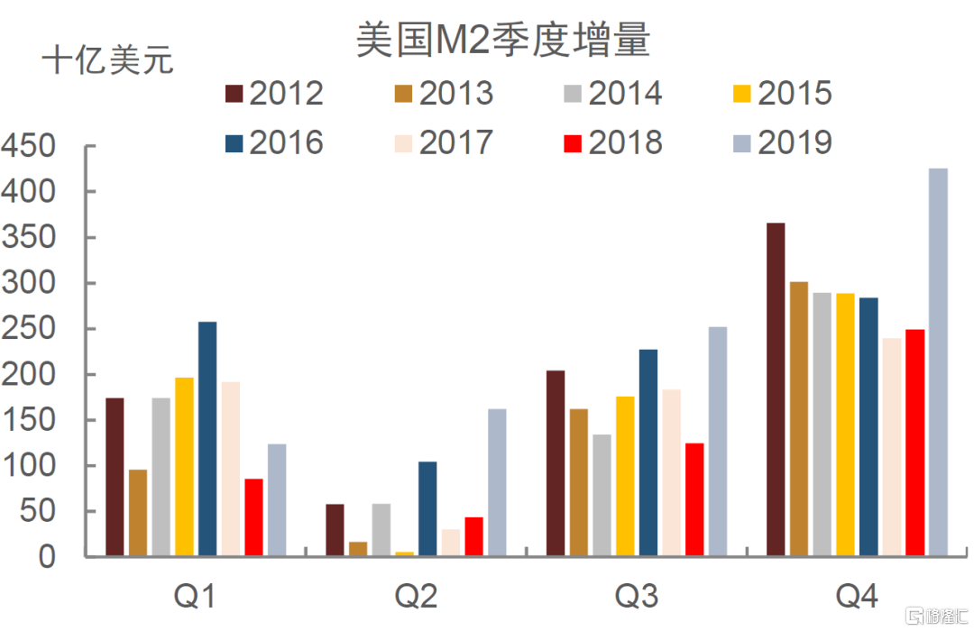 图表11:2017年10月开启缩表后,M2季度增量出现回落