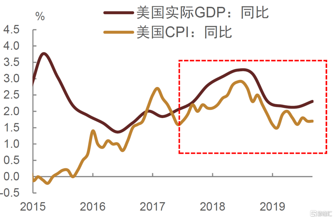 图表13:2018年下半年起,美国经济增速和CPI同比均有所回落