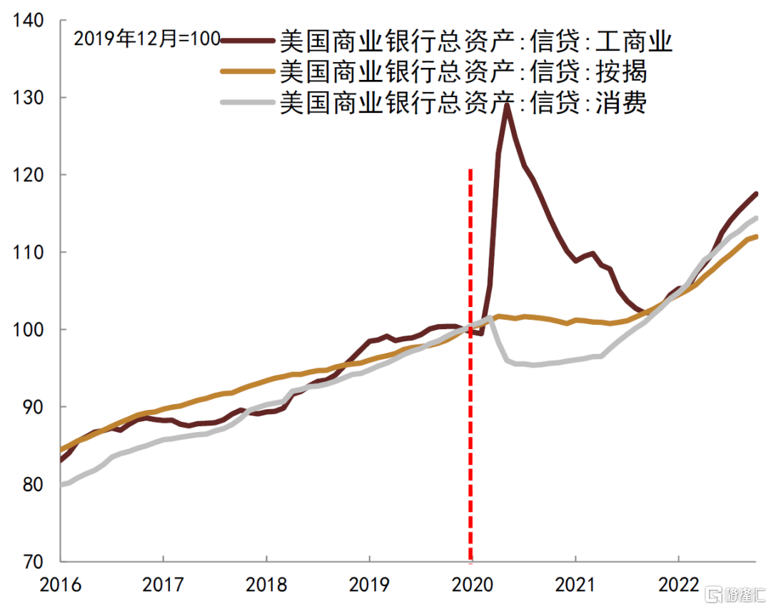 美联储缩表速度相对偏慢,流动性收紧不足不利于控制高通胀。本轮货币收紧过程中,美联储首先选择大幅度加息,而资产负债表收缩则相对偏慢。基于美国经济金融结构来讲,货币政策主要依赖利率路径影响实体,通过大幅提高利率水平,使得实体部门融资成本上升,进而起到抑制总需求和控制通胀的作用,不过利率作用于实体经济是需要时间的,在这个过程中,如果流动性总体仍然充裕,对于控制来讲就是事倍功半了。当前美联储资产负债表规模较高,商业银行流动性总体也较为充裕,尽管高利率抑制了部分融资需求,但是融资总量仍然较高,当前美国非金融部门通过股票、债券和信贷从金融部分获得资金规模仍然明显高于疫情之前(图表17),这意味着货币紧缩的效果还需要更长时间才能得到更多显现。如果美联储不加快收缩资产负债表,那么为有效控制通胀上升,美联储可能就把不得不把利率提到更高的水平,把高利率维持更长时间。不过从上世纪美国滞胀时期的经验来看,仅仅依靠高利率抑制通胀是有局限的,控制流动性也较为关键,否则通胀容易引起工资上涨,并形成长期通胀预期。