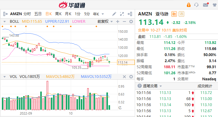 今年以来,亚马逊的股价下跌了30%,但较10月14日的低点部分反弹。