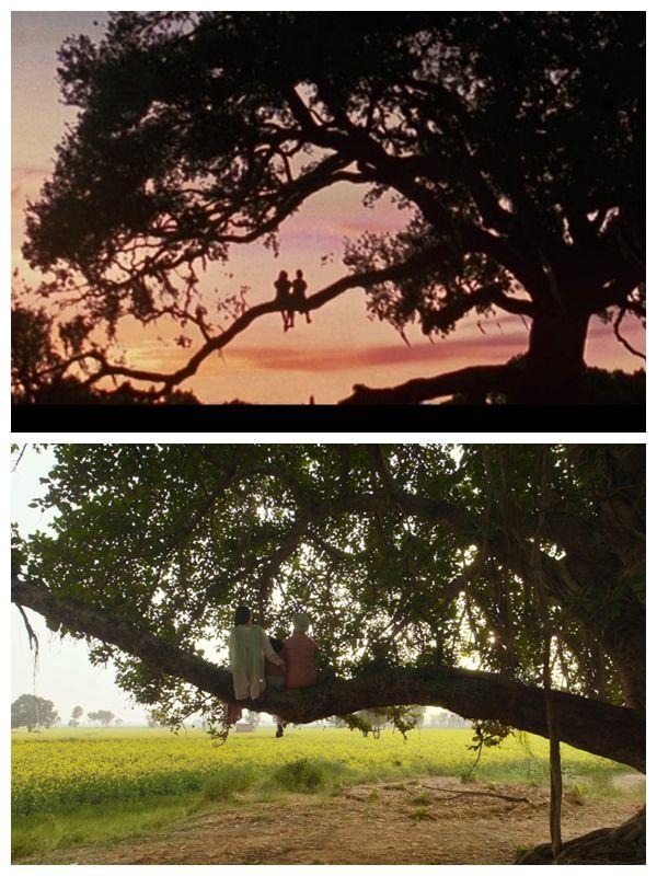 上下图分别为《阿甘正传》《阿辛正传》古树镜头剧照。