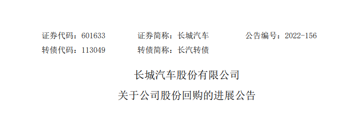 长城汽车(02333)发布公告,截至2022年10月24日,公司累计回购公司H股股份2.33亿股,占公司于2022年10月24日的已发行总股本的2.54%及已发行H股总股数的7.79%,购买的最高价为港币16.98元╱股,最低价为港币7.67元╱股,已使用资金总额为港币27.81亿元。