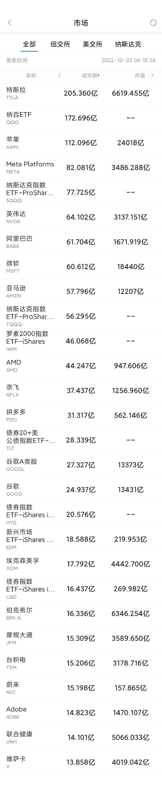 第6名微软收高2.12%,成交60.6亿美元。微软将在美东时间10月25日盘后公布2023财年第一季度业绩。微软为企业提供云计算和软件等一系列关键服务与产品,其需求依旧强劲,预计这有利于本季度财报数据。