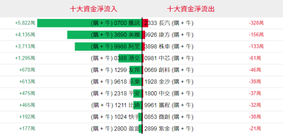 好仓(认购证及牛证)方面,周一腾讯控股、美团、阿里巴巴、港交所等相关好仓分别约5822万、4135万、3713万及1295万港元资金净流入部署;长城汽车、康方生物、时代电气等相关好仓则见资金净流出套现。