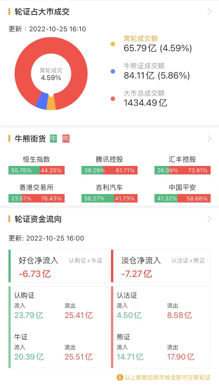 其中,窝轮总成交额为65.79亿港元,牛熊证总成交额为84.11亿港元。