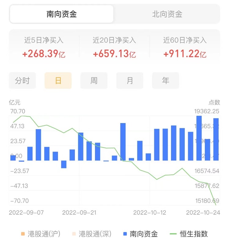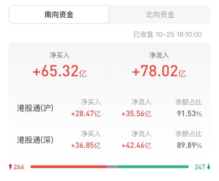 南下资金今日净买入港股65.32亿港元,其中港股通(沪)净买入28.47亿港元,港股通(深)净买入36.85亿港元。上一交易日净买入港股66.91亿港元。