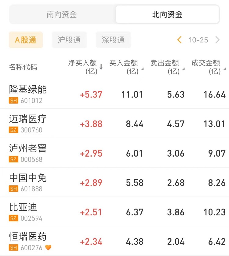 北上资金今日净买入隆基绿能 $601012.SH 5.37亿元,为今日买入之最;净买入迈瑞医疗 $300760.SZ 3.88亿元。