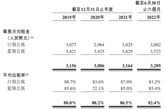 特别是在今年上半年,在月均租金下降的情况下,魔方生活服务仍延续了出租率下滑的颓势。其中,成熟公寓社区的单房月均租金已降至3180元,平均出租率仍较2021年底的88.5%减少4.6个百分点;白领公寓的单房月均租金由2019年的3077元降至2022年上半年的3002元,平均出租率却从2019年的88.7%跌至81.2%。