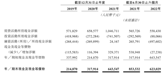 与此同时,魔方生活服务的现金及现金等价物净额亦在减少。数据显示,截至2022年6月末,该公司经营活动所得现金净额为5.58亿元,投资活动所得现金净额为-0.88亿元,融资活动所得现金净额为-4.98亿元。