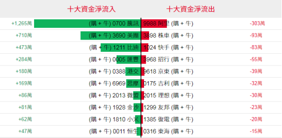 淡仓(认沽证及熊证)方面,周二汇丰控股、中国平安、兖矿能源等相关淡仓或部分资金净流入;腾讯控股、美团、阿里巴巴、港交所等相关淡仓分别约2420万、1898万、1256万及848万港元资金净流出。