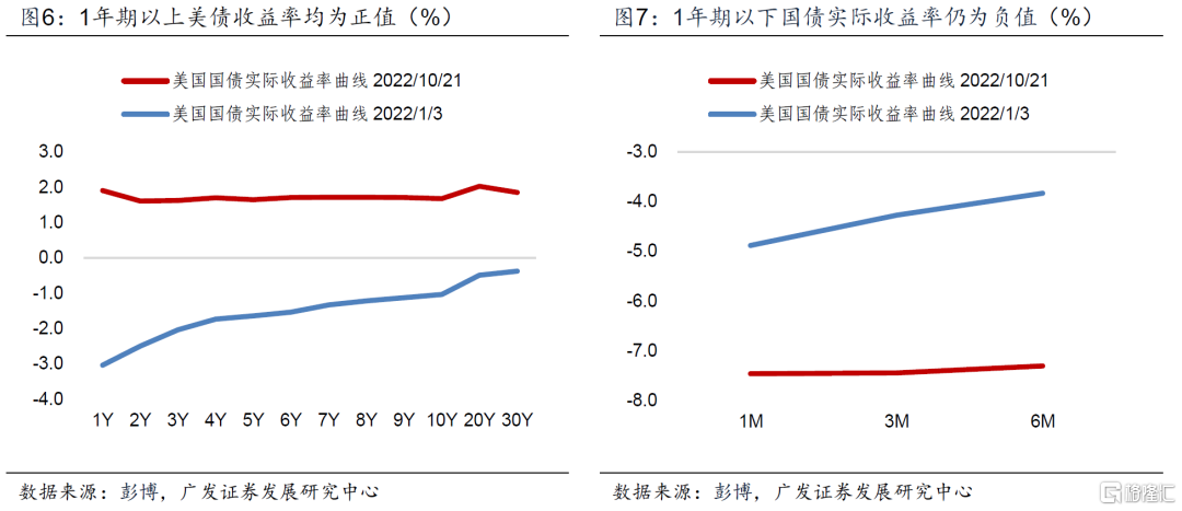 第三,虽然长期美债收益率均已回归正值,但短端(1年期以内)美债收益率仍处于负值,而短端美债收益率主要随政策利率波动,显示政策利率水平仍然较低。