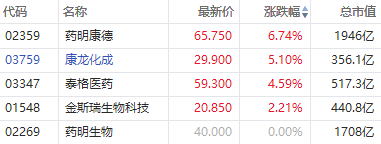 10月27日讯,港股医药外包概念今年再度活跃,截至发稿,药明康德涨超6%,康龙化成涨超5%,泰格医药涨4.59%,凯莱英涨超3%。