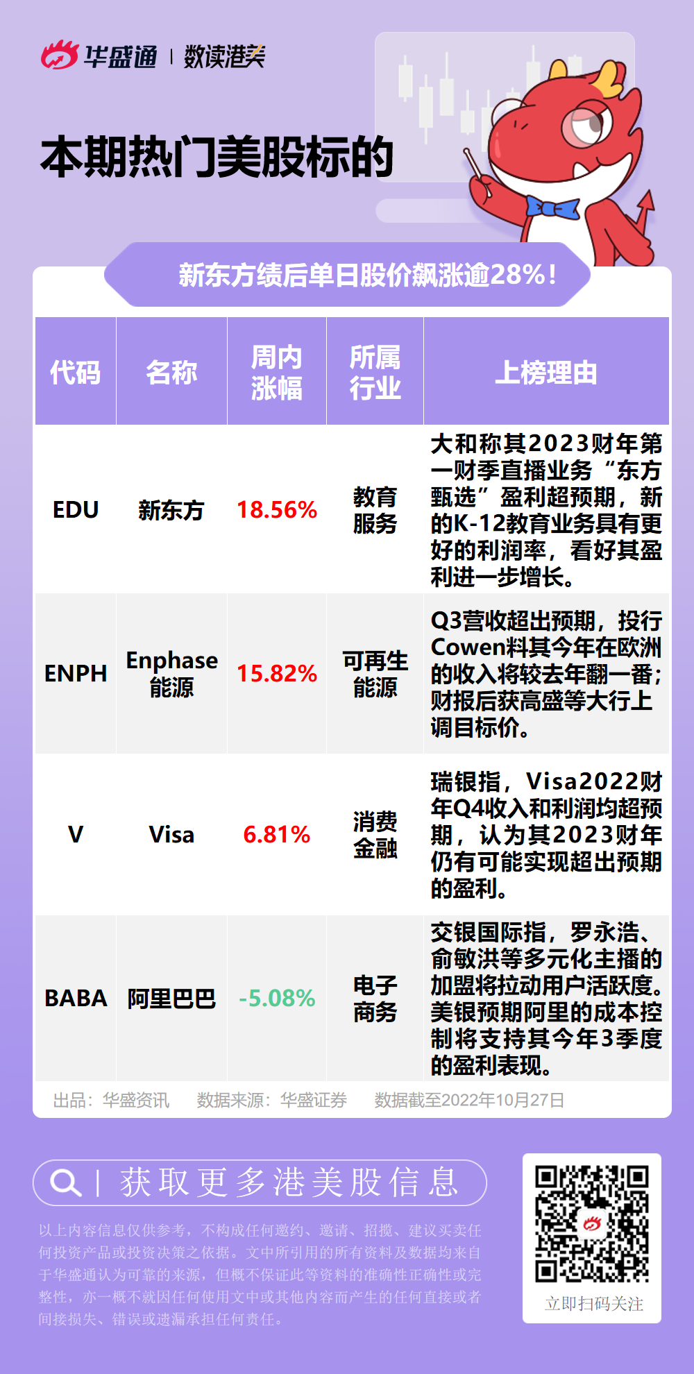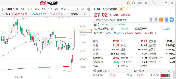 1、新东方 $EDU 绩后单日股价飙涨逾28%!大和看好新东方盈利进一步增长。