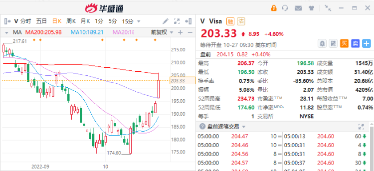 3、绩后涨5%,瑞银看好Visa $V 2023财年再实现超预期盈利,瑞信料其将继续“优于大市”。