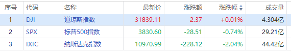 美东时间周三(10月26日),三大股指涨跌不一。道指收涨0.01%,标普500指数收跌0.74%,纳指受累于科技股表现大跌2.04%。