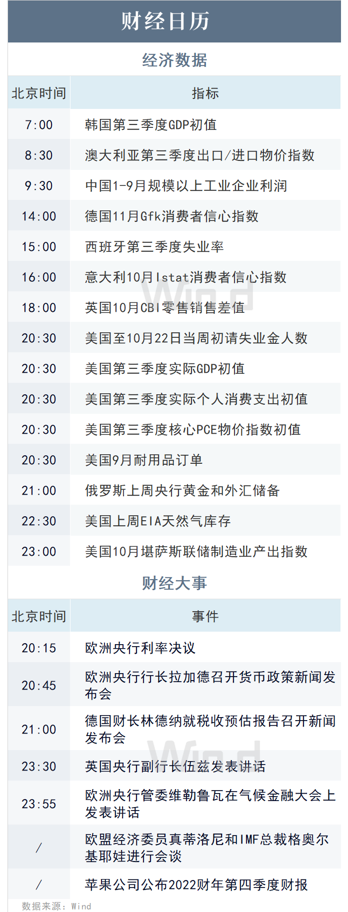 重要经济日程&数据
