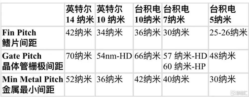 表:英特尔和台积电7、10、14纳米制程芯片技术基本参数比较。 数据来源:eetimes.com;WikiChip s