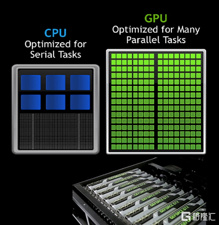 第二大原因,是英特尔错过了这轮GPU(图形处理器)需求爆发式增长。在早期的市场版图中,GPU目标客户是图形用户,或者说有很大一部分是游戏玩家。但在大数据、机器学习和人工智能面前,人们发现为3D渲染而设计的图形芯片,由于其多核并行的结构,在同时计算大量数据时,反而比CPU更具优势(数字货币的“矿卡“也是这个逻辑)。