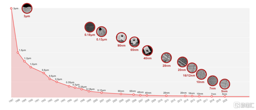 图: 台积电芯片制造制程历年发展情况。 来源: tsmc.com
