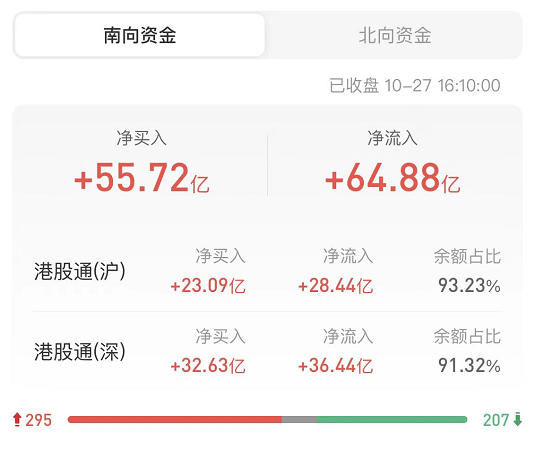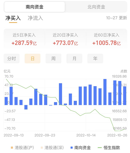 南下资金今日净买入港股55.72亿港元,其中港股通(沪)净买入23.09亿港元,港股通(深)净买入32.60亿港元。上一交易日净买入港股50.60亿港元。