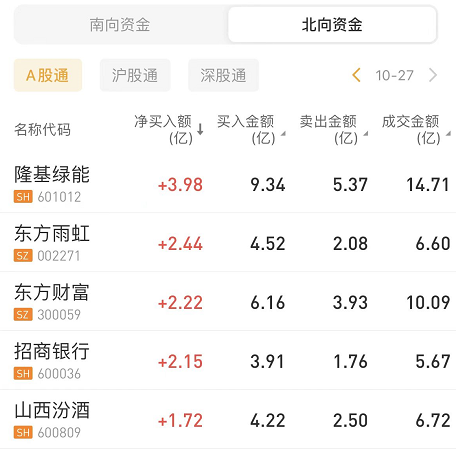 北向资金净买入榜