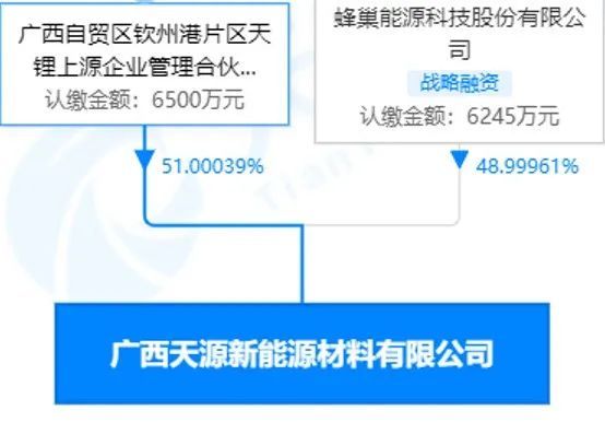 另外,该目标公司大股东广西自贸区钦州港片区天锂上源企业管理合伙企业与第二大股东蜂巢能源科技股份有限公司均于2018年进入广西天源新能源材料有限公司,总投资金额为1.2745亿元。