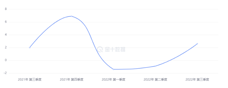 10月27日周四,美国商务部数据显示,在连续两个季度出现下滑后,美国第三季度实际GDP年化季环比初值增长2.6%,高于预期2.4%,较第二季度的-0.6%和第一季度的-1.6%明显回升,创2021年第四季度以来新高。实际GDP初值实现今年以来的首次正增长,这一增长在很大程度上是由于贸易逆差的缩小,经济学家预计并认为这一现象是暂时性的,不会在未来几个季度持续。