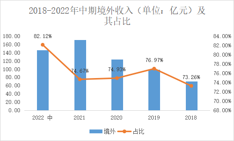 药明康德一直立志于扩大海外市场,并且做的十分出色。近些年来,境外收入占总收入的七成多,并在今年中期达到了82.12%,稳稳收获百亿级别的海外市场。