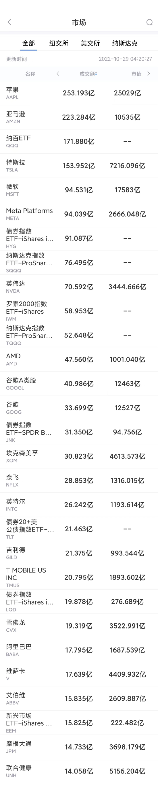 以下为美股当日交易最活跃的20只股票(按成交额):