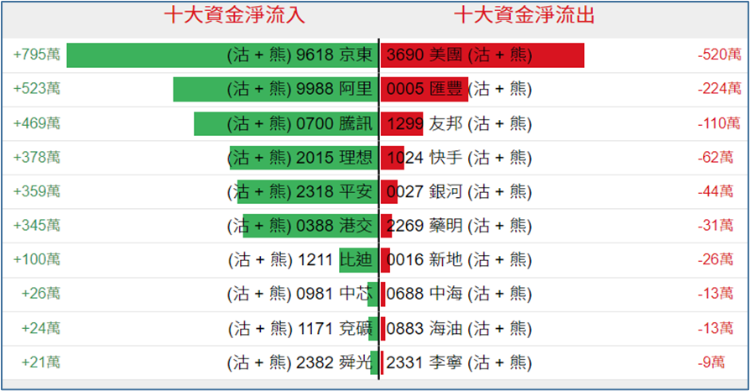 淡仓(认沽证及熊证)方面,上周五京东、阿里、腾讯相关淡仓单日分别获795万港元、523万港元、469万港元资金净流入,美团、汇丰、友邦等相关淡仓单日分别获520万港元、224万港元、110万港元资金净流出。