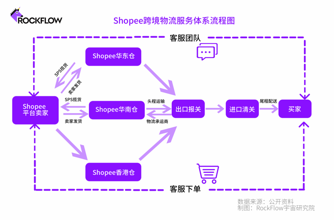 为解决中国商家跨国运输的痛点,Shopee干脆建立起自营的物流机构SPS(Shopee Logistics Services),专营海外物流,简化中国大陆商家发货过程。 卖家可以把货先发到上海、义乌、泉州、深圳、香港等转运仓,再由转运仓送到当地市场,完成最后一公里派送。 在广东、江浙等核心区域,Shopee甚至提供上门收货服务,让发货像收货一样简单。