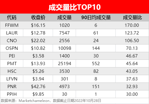 重点动态:REIT公司PennyMac Mortgage Investment Trust $PMT 上周五大涨10%,相对期权量比大增。本月更早些时候,小摩研报指,维持Pennymac mortgage优于“大市评级”, 目标价由16.00美元调整至15.00美元。