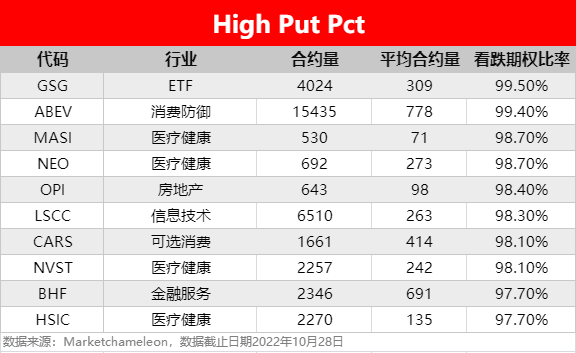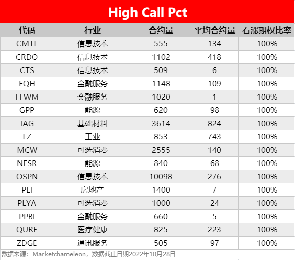 注:High Call Pct/High Put Pct是指相关期权标的当前看涨/看跌比例大小,该比值越高意味着该期权标的看涨/看跌的合约占比越高。