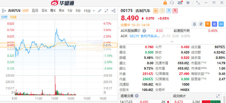 受公告刺激,吉利汽车午后股价一度涨4%。