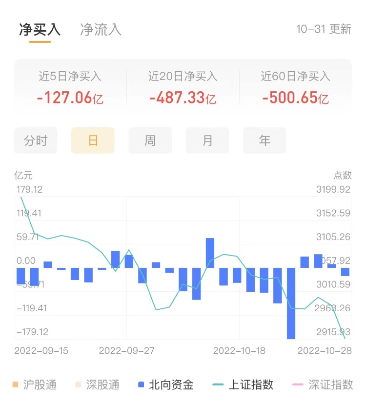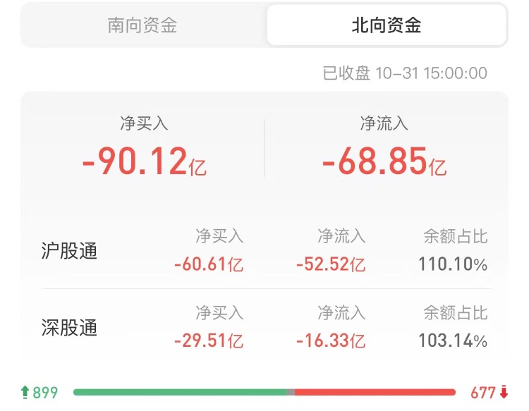 北上资金今日净卖出90.12亿元,沪股通净卖出60.61亿元,深股通净卖出29.51亿元。上一交易日净卖出20.32亿元。