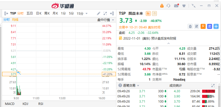 华盛资讯10月31日消息,美股盘中,三大指数低开低走。截止北京时间21:48,无人驾驶卡车公司图森未来重挫40.97%,公司宣布解除首席执行官、总裁和首席技术官侯晓迪的职务,此外,图森未来将于今日美股盘后公布业绩。