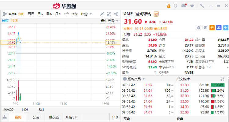 美股WSB概念股大涨,游戏驿站一度触发停牌,截止发稿,涨幅收窄至12.18%,报31.60美元。AMC院线涨10.12%,3B家居涨8.71%,